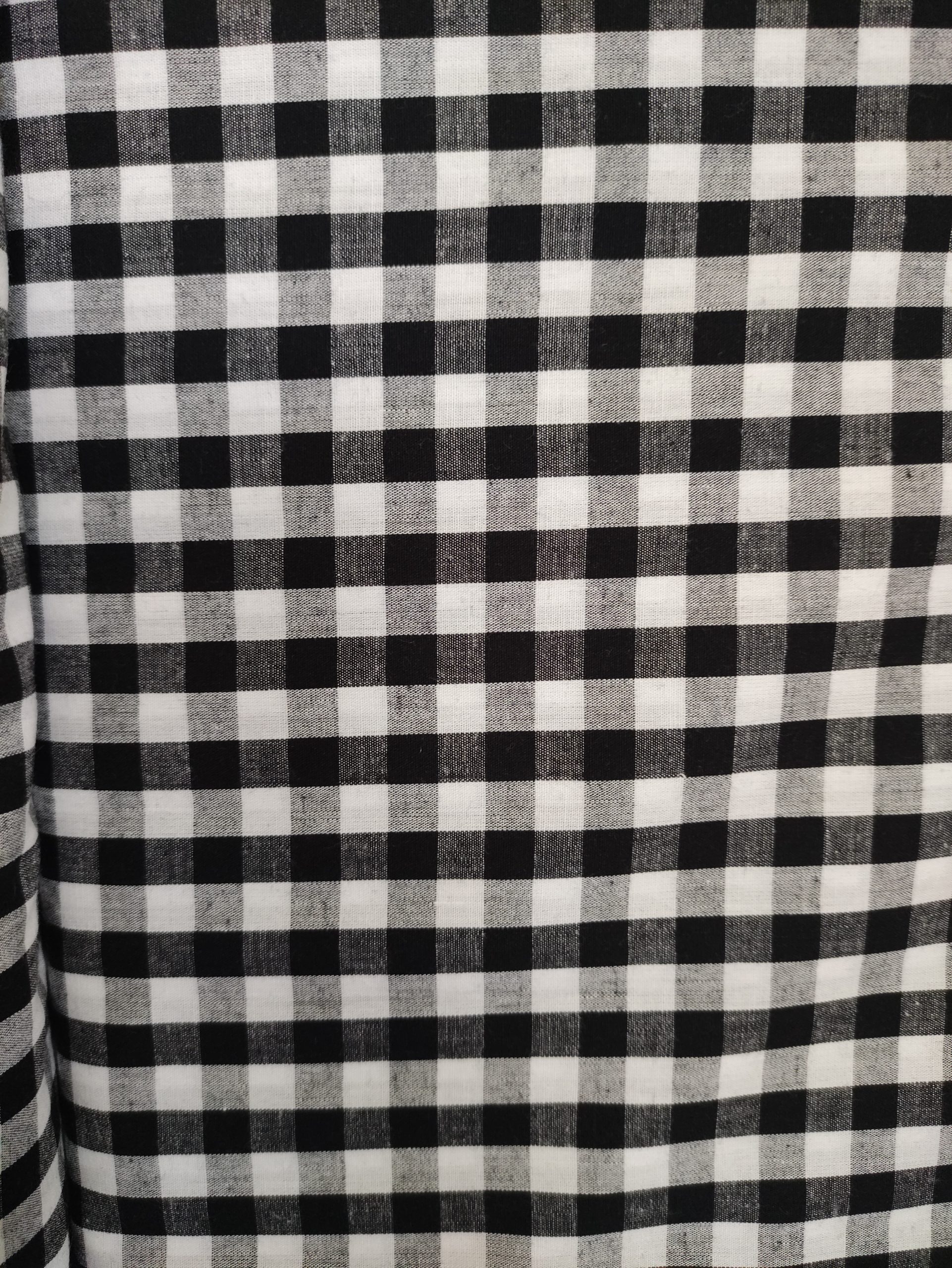 Vichy blanco y negro en algodón con un ancho de cuadro de 9mm. y un ancho de tela de 150 cm. se puede comprar desde 25 cm. es de facil lavado por su gran calidad.